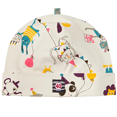 帽子のオーガニックコットンの当社のECOコレクションから。弊社のLimited Editionが特徴の記念プリントとロゴマークに合わせて誕生日、楽しいの詰め合わせで、パーティの動物である。該当製品が適用されるように袖口に調整できるスーツ赤ちゃんの頭部サイズが表示されています。extra-softくりぬいとしないフラットロックの縫い目。95 %オーガニックコットン5 %エラステイン