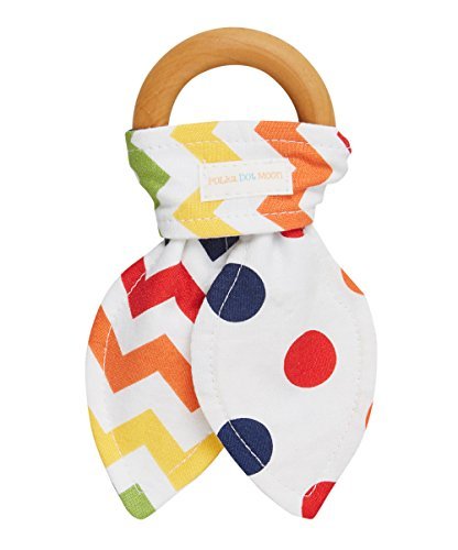 Wooden Teether - 2.5 natural maple hardwood ring is finished with certified organic beeswax;Bunny Earys 7.5'' L & Wooden Teething Ring is 2.5;This organic wood teething ring is a great alternative to a plastic teether.;Bunny ears are 100% cotton, bright Chevron & Dot prints with a middle layer to be extra absorbent. Ears are machine washable;Proudly made in the USA: Bend, Oregon