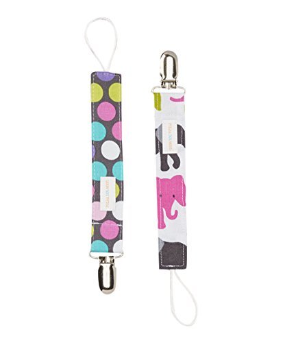 Pacifier Clip Set of 2 in Pink Elephants and Purple Polka Dots - Pacifier Clips Girls by Polka Dot Moon