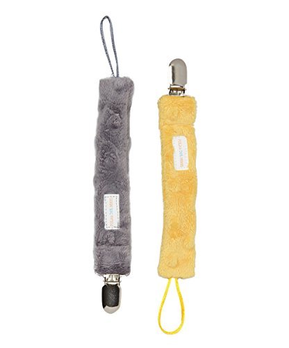Baby Pacifier Clip Set of 2 in Gray & Yellow Minky
