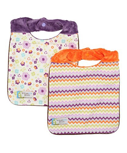 Proudly made in the USA; 100% Flowers & Chevron cotton print on one side, reverses to super luxe minky on the other;DROOL PROOF - Lined with a layer of flannel for extra absorbency; making this bib stylish and practical;Each Bib is 9 x 13, with a neck opening sized to avoid gaps that expose clothes;SIMPLE snap closure is more practical than Velcro;Unique baby gift, coordinates with Polka Dot Moon burp cloths, binky keepers & blankets