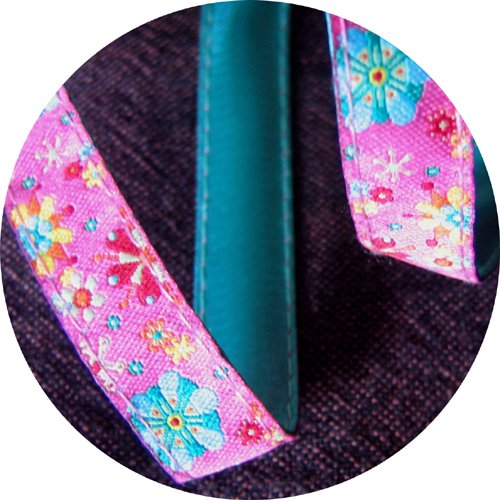 - 花柄(ピンク)、裏地/ミントブルー