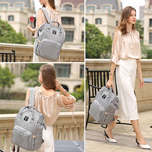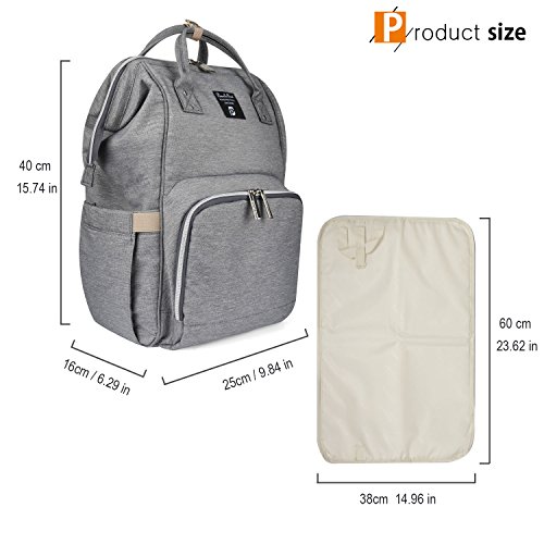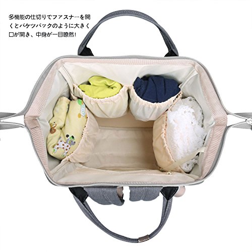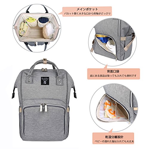 PomeloBest マザーズバッグ リュック 多機能 ママバッグ 大容量 ベビー用品収納 ベビーカー用 ママ旅行用バッグ 3WAYリュック 保温機能ポケット おむつ替えシート付き 出産お祝い ライトグレー