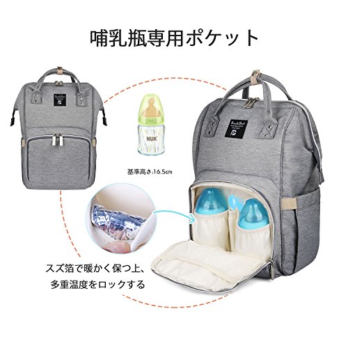 - 【保温・乾湿分離】:哺乳瓶専用ポケット300ml(高さ:16.5cmx幅:6cm)は、スズ箔で暖かく保ちます。防水材質で製作するポケットだから、ベビーの濡れた服は入れても大丈夫。