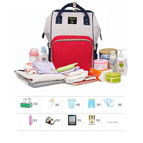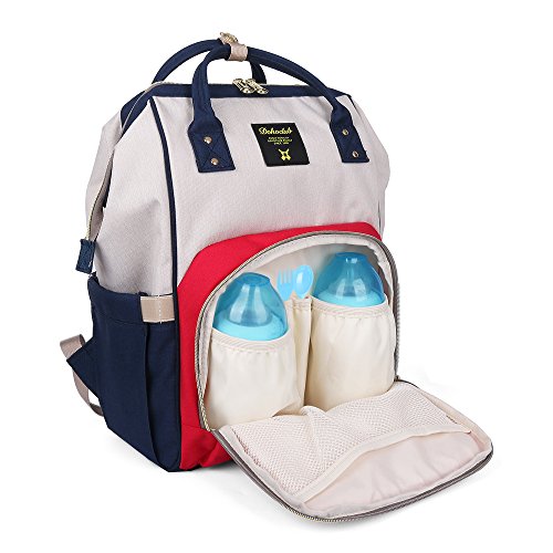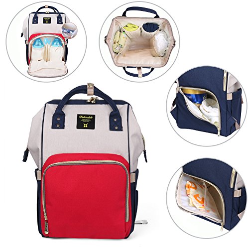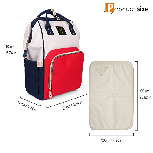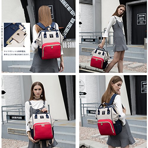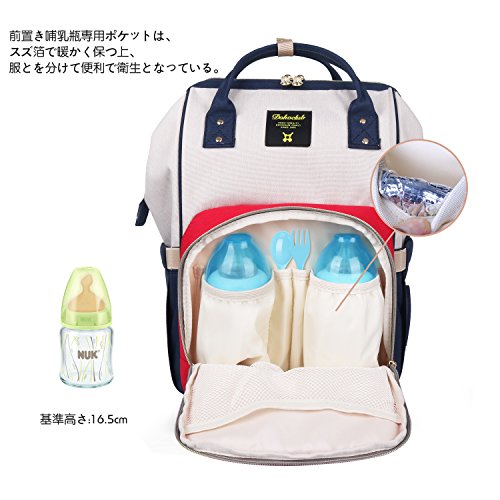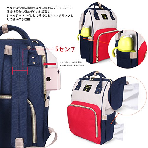 PomeloBest マザーズバッグ 大容量ママリュック ベビー用品収納 保温機能ポケット おむつ替えシート付き 出産お祝い (レッド+ブルー+ベージュ)