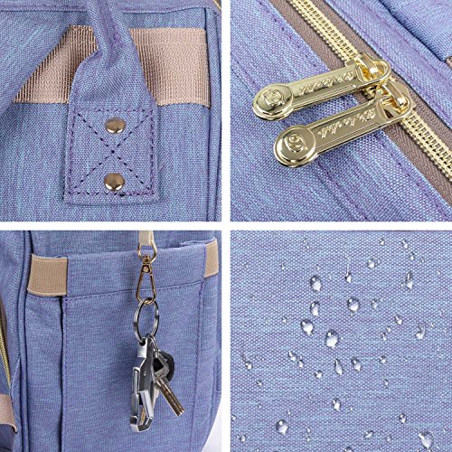 PomeloBest マザーズバッグ 大容量ママリュック ベビー用品収納 保温機能ポケット おむつ替えシート付き 出産お祝い (パープル)