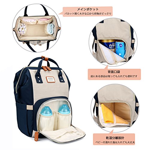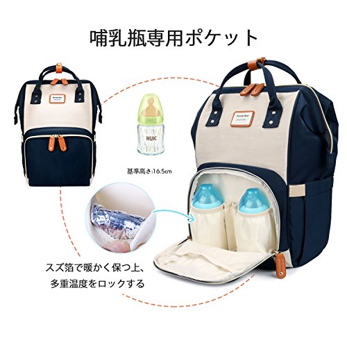 PomeloBest マザーズバッグ リュック ママバッグ 大容量ママリュック マザーズリュック 人気 レディースバッグ リュック ベビー用品収納 おむつ替えシート付き 保温ポケット付き 盗難防止ポケット付き 出産祝い マザーズバッグ ネイビー…