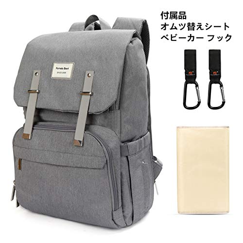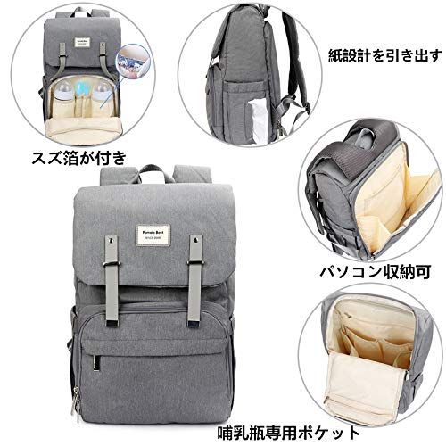 Pomelo Best マザーズバッグリュック 大容量 軽量 ママバッグ マザーズリュック 防水 多機能 バックパック ビジネスバッグ ベビー用品収納 旅行 出産祝い 通勤 レディース メンズ グレー