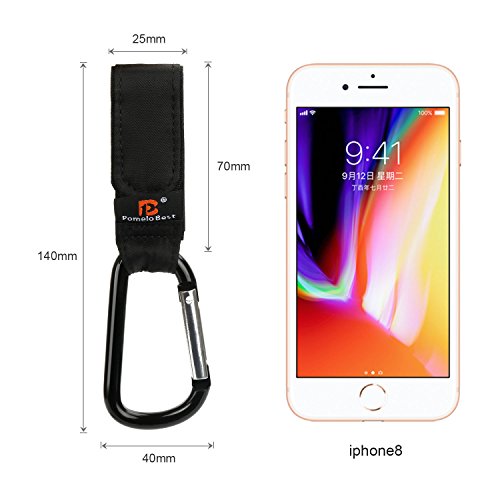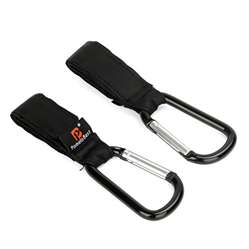 PomeloBest ベビーカー フック 人気 ベビーカー荷物かけフック カラビナクリップ 自転車のハンドルやスーツケースにも使えるマルチフック 耐荷重5KG 荷物フック マジックテープ式 2個組