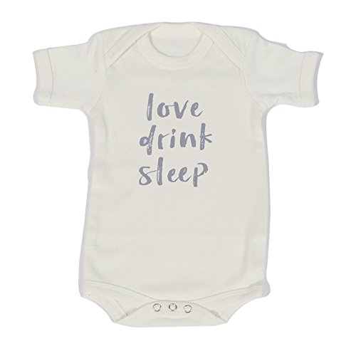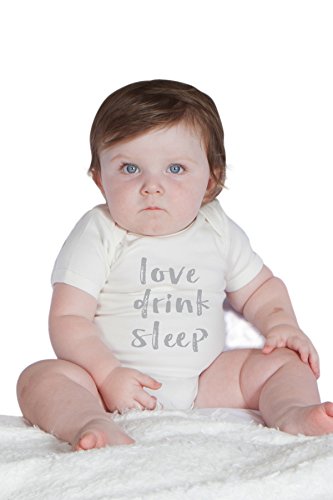 ポンチョベビー Poncho Baby オーガニックコットン 半袖 ロンパース ボディスーツ Love,Drink,Sleep (0-3ヶ月, オフホワイト)