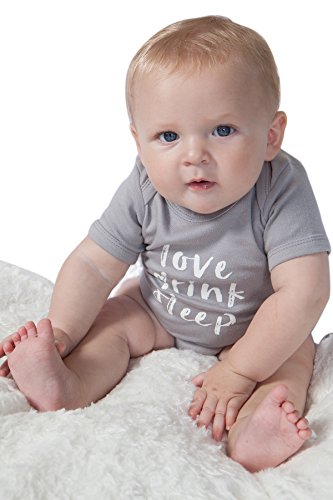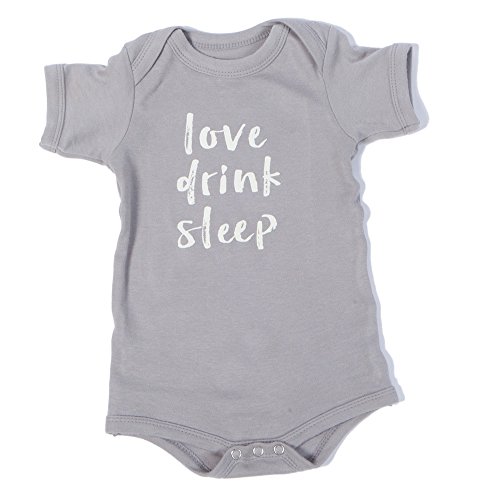 ポンチョベビー Poncho Baby オーガニックコットン 半袖 ロンパース ボディスーツ Love,Drink,Sleep (0-3ヶ月, グレー)