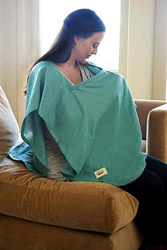 Poncho Baby (ポンチョベビー) ムスリンコットン100% ポンチョ型 授乳用ケープ オーバルタイプ (オーバルタイプ, エメラルド)