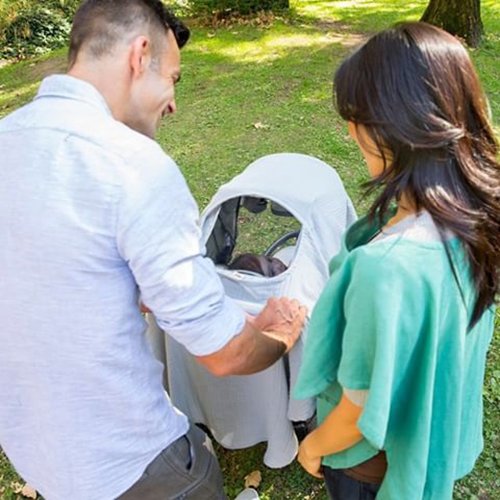 - ベビーカーやカーシートのカバーとして使用したり、ブランケットとしても使えます