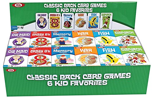 The POOF-Slinky 0X8-14000 Ideal Classic Pack Card Games comes with (12) each of Old Maid, Crazy 8's, Memory, War, Fish and Slapjack. Bright, colorful, card playing fun times 6-dozen! Easy to merchandise on a shelf, counter, or up by the cash register. The