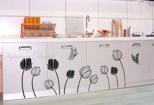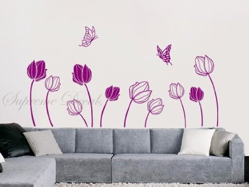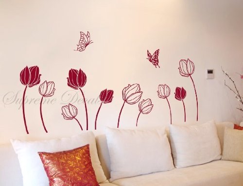 Custom PopDecals - Butterflies catch Tulips - Beautiful Tree Wall Decals for Kids Rooms Teen Girls Boys Wallpaper Murals Sticker Wall Stickers Nursery Decor Nursery Decals by PopDecals