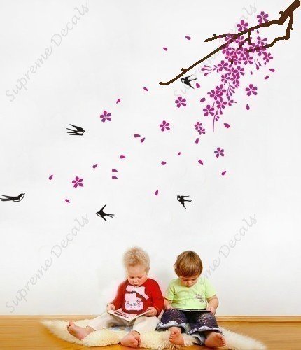 Cherry blossom, birds - Beautiful Tree Wall Decals for Kids Rooms Teen Girls Boys Wallpaper Murals Sticker Wall Stickers Nursery Decor Nursery Decals by PopDecals