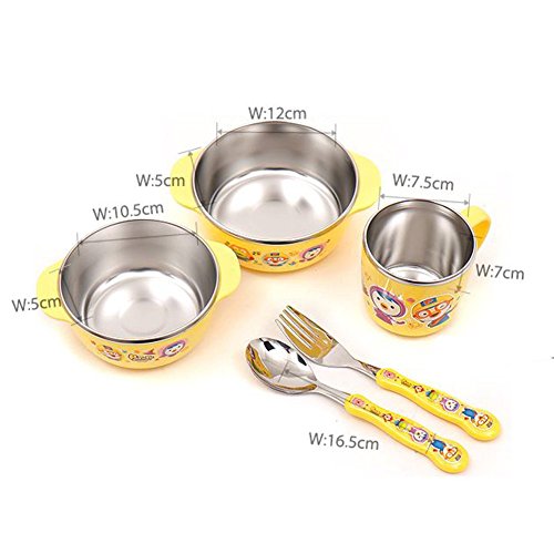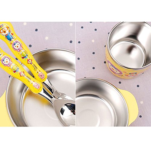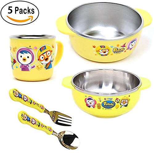 Pororo キャラクター 5セットステンレス製の食器 セット/滑り止めシリコン/2大小ボウル 汁椀カップ/赤ちゃんの男の子と女の子のためのフォークスプーン/子供 赤ん坊の ベビー 幼児 おやつケース 食器ボウル 偉大な贈り物 [並行輸入品]