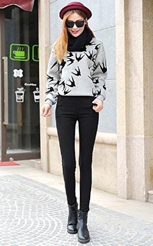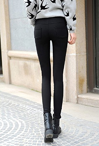 (ポルトプエルト) Porto Puerto 10分丈 リブ付 ストレッチ 裏起毛 パンツ マタニティ 妊婦 [海外直送品] (L, ブラック)
