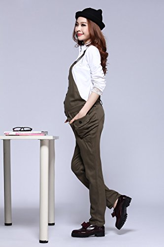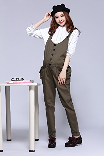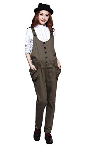 (ポルトプエルト) Porto Puerto 無地 大きいサイズ カジュアル オールインワン マタニティ 妊婦 妊娠中 ママ レディース L XL 茶色 緑色 ロング丈 夏服 秋服 体型カバー [海外直送品] (XL, カーキ)
