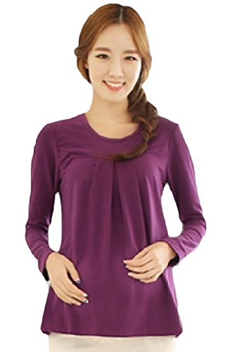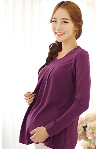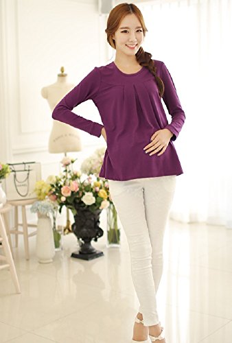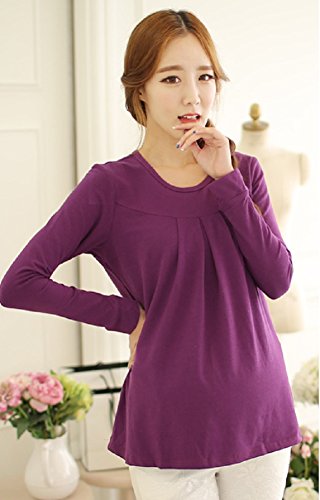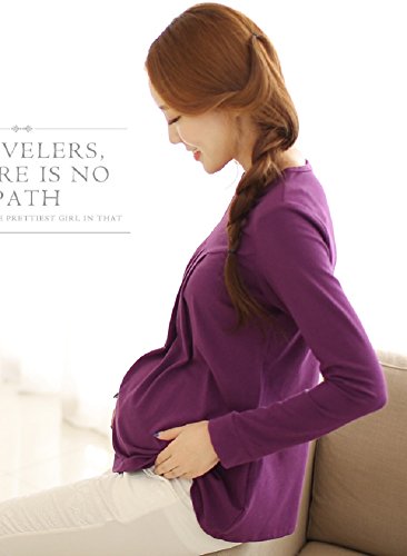 【海外直送品】(ポルトプエルト) Porto Puerto 長袖 ゆったり シンプル トップス 妊婦 マタニティ 妊娠中 レディース 女性 母親 ママ L XL 緑 白 紫 チュニック 綿 上着 (L, パープル)