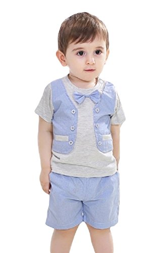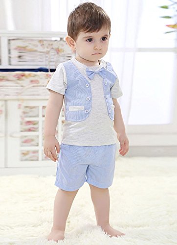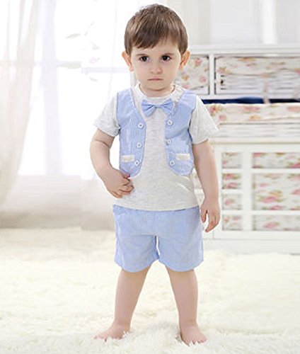 半袖 フォーマルスール 男の子 ボーイズ ベビー 90cm 赤色 灰色 青色 結婚式 セットアップ (ブルー)
