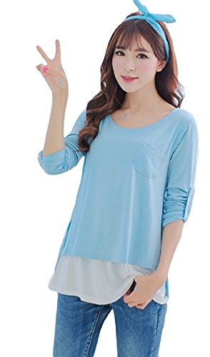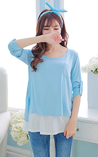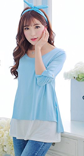 (ポルトプエルト) Porto Puerto 【海外直送品】 重ね着風 きれいめ 授乳口 ゆったり 妊婦 マタニティ ママ 妊娠中 母親 レディース M L 青 緑 桃色 長袖 モーダル チュニック (M, ブルー)