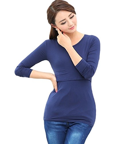 (ポルトプエルト) Porto Puerto 長袖 Uネック 授乳口付 トップス マタニティ 妊娠中 妊婦 ママ 母親 レディース M L 黒 灰色 紺色 赤 シンプル チュニック 薄手 きれいめ [海外直送品] (M, ネイビー)