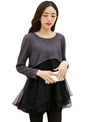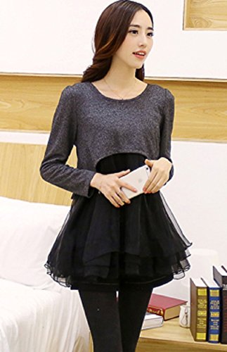 (ポルトプエルト) Porto Puerto Uネック レース 長袖 上下セット ワンピース レギンス マタニティ 妊婦 [海外直送品] (M, グレー)