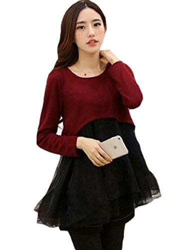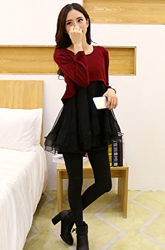 (ポルトプエルト) Porto Puerto Uネック レース 長袖 上下セット ワンピース レギンス マタニティ 妊婦 [海外直送品] (L, レッド)