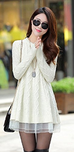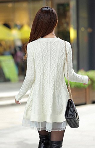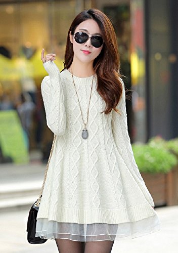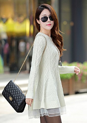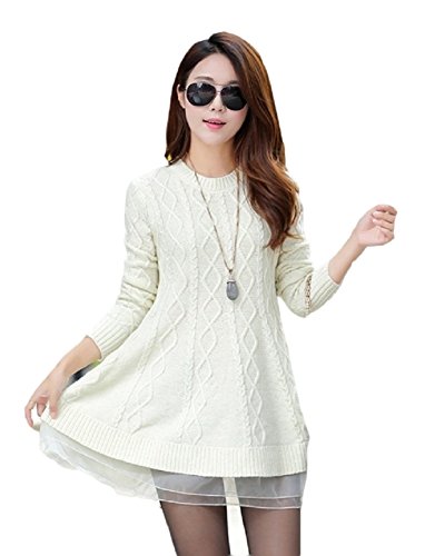 (ポルトプエルト) Porto Puerto Uネック ケーブル編 Aライン セーター ウール チュニック マタニティ 妊婦 [海外直送品] (M, ホワイト)