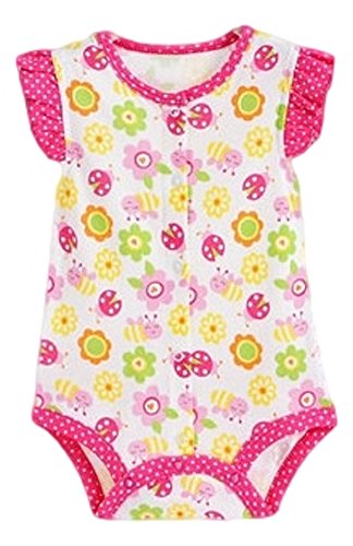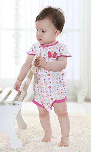 (ポルトプエルト) Porto Puerto 前開き 半袖 ロンパース 女の子 赤ちゃん ベビー 59㎝ お花柄 さくらんぼ柄 蝶々柄 小花柄 カバーオール 新生児 夏服 (お花柄)