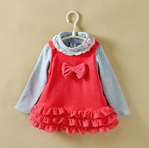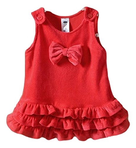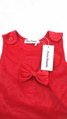 (ポルトプエルト) Porto Puerto フリル 綿 可愛い リボン付 サロペット 女の子 ガールズ ベビー 赤ちゃん キッズ 子ども 85㎝ 90㎝ スカート オーバーオール カジュアル (90㎝, レッド)