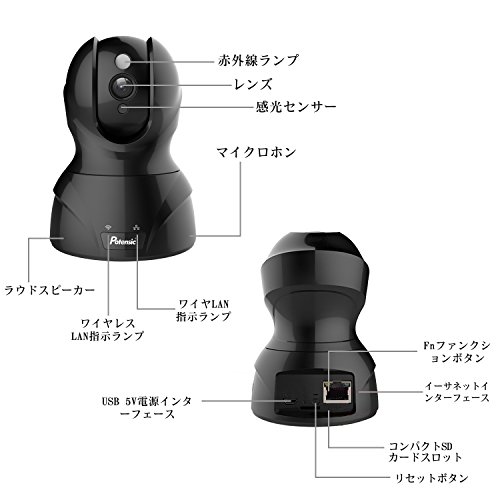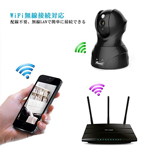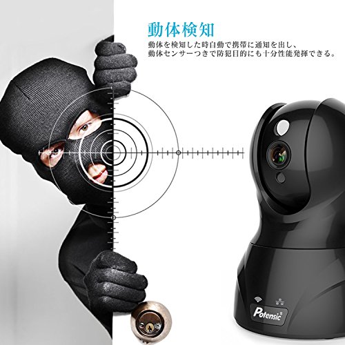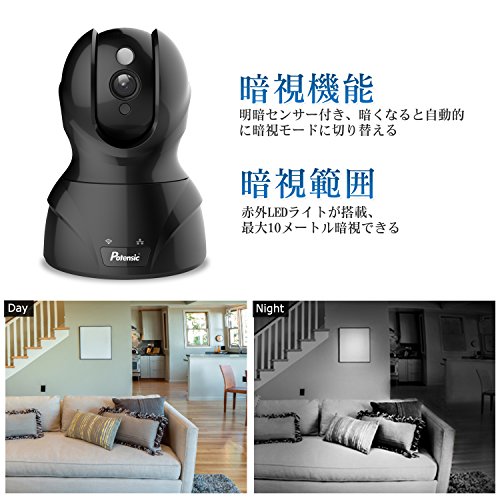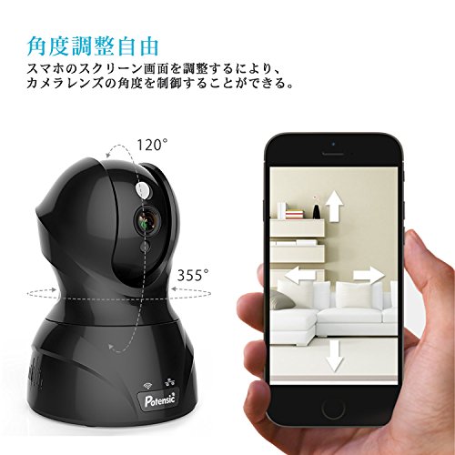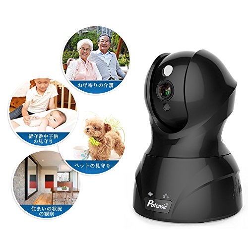 ネットワークカメラ Potensic ワイヤレス防犯カメラ 小型監視カメラ ウェブカメラ 有線/無線LAN対応 720P 100万画素 H.264圧縮 無線カメラ 暗視撮影 遠隔操作可能 IR-CUT機能 動体検知 警報機能 マイク内蔵 双方向音声 スマホ/ipad/パソコン対応 日本語取扱書付(ブラック)
