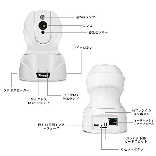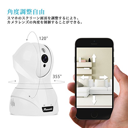 Potensic ネットワークカメラ 1080P 200万画素 ワイヤレスIPカメラ WIFI対応 ベビーモニター 監視カメラ 動体検知 警報機能 双方向音声 遠隔操作 暗視機能 セキュリティ リアルタイム監視 ペット/子供/老人/猫犬ペット等留守番 スマホ/ipad/パソコン対応 ワイヤレス防犯カメラ (ホワイト)