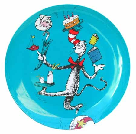 ■ご注意下さい■こちらの商品は店頭のセール品で売られていたものです。商品本体に細かいかすれ、キズなどがあります。箱は一応付いていますが、かなりの傷み、破損があります。ご了承の上ご注文下さいますようお願いします。ドクター・スースの子供用食器のセットです。代表的な絵本、The Cat in the Hat (キャットインザハット)のイラストがプリントされています。カラフルでとても楽しいデザイン。プレート、ボウル、コップのセット。全てPBAフリー。Phthalate(フタル酸類全般)フリー。コップの材質はアクリル、プレートとボウルは竹(30%)とメラミン(70%)です。手洗いのみ 電子レンジでの使用はお奨めしません。サイズはそれぞれ下記の通りです。プレート 直径9インチ(約22.86cm)ボウル 直径6インチ(約15.24)コップ 10オンス(約300cc)Pottery Barn Kidsはアメリカとカナダで展開する高級キッズ用品ブランド。高級キッチン用品のお店、ウィリアムズ・ソノマのグループです。素材にもこだわった上質でハイセンスなアイテムが揃っています。