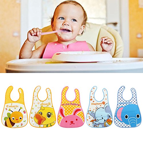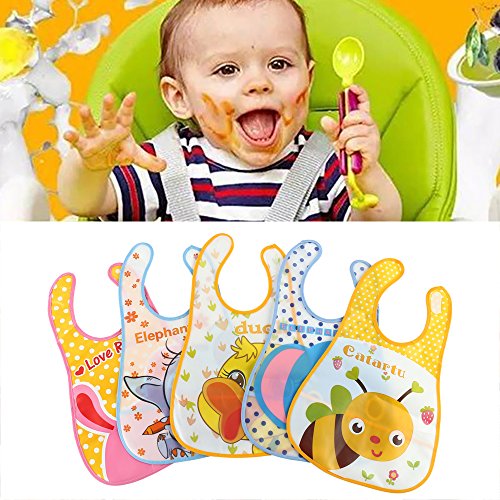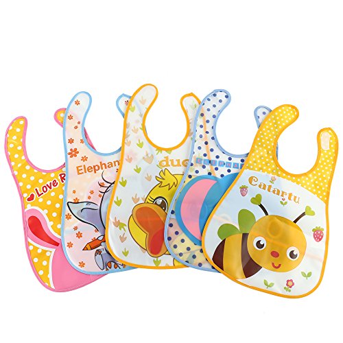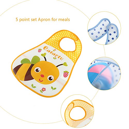 Powanfity_JP 5点セット ベビー キッズ 食事用エプロン スタイ 防水ビブ ポケット付き かわいいデザイン 赤ちゃん 男の子 女の子 離乳食 保育園用 お食事エプロン よだれかけ