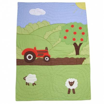 • アップリケで使用されている小さな赤いトラクター