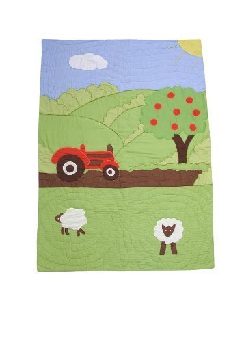 Powellクラフトベビー男の子Farmyard Cribキルト。75 cm X 102 cm.グリーン