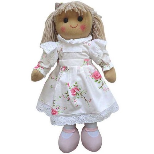 - Powell Craft Large Rag Doll with white flowery Dress - 40cm