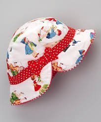 100% cotton hat with the very popular Girls at Play vintage design. Polka dot trim and a bow at the side.;Matching dress and knickers available.;Size Approx 1-3 years. 52cm,