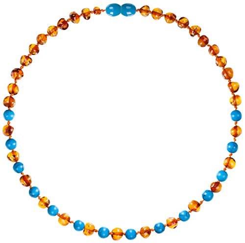 Baltic Amber Teething Necklace for Babies With Gems - Lab-Tested - Cognac & Turquoise Mix - Comes With Silicone Teething Necklace - 12.5 Inches [並行輸入品]