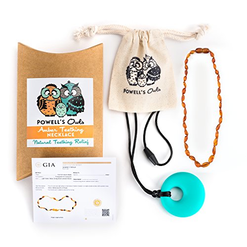 Baltic Amber Teething Necklace - Handmade in Lithuania - Lab-Tested Authentic - Comes with Silicone Teething Pendant (12.5 inches - Standard, Cognac) by Powell's Owls