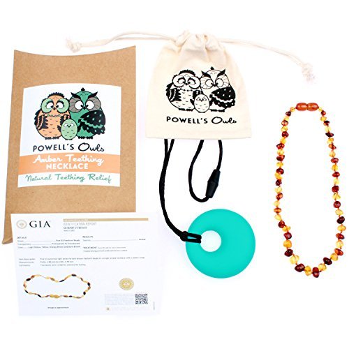 SAFE & ORGANIC TEETHING RELIEF - A safe alternative to toxic, chemical teething tablets. Reduces drooling and fussiness. Amber's natural Succinic Acid boosts the immune system and reduces gum swelling.;HIGHEST QUALITY AMBER - Your baby deserves the best. Handcrafted from all natural, authentic Baltic Amber. Each necklace is beautifully polished to perfection by a 100% chemical-free process using small pine pieces in a wooden tumbler. Only necklace verified authentic by the Gemological Institute of America, the world's leading authority in gemology.;WORKS FASTER & LASTS LONGER - Authentic Baltic Amber contains more Succinic acid than imitation opal. Teething pain relief for your baby in 15-30 minutes. Necklace does not lose effectiveness over time.;DURABLE & SAFE DESIGN - Carefully designed for durability and safety. The screw clasp prevents your baby from taking the necklace off. Every bead is secured by two knots. This prevents a choking hazard. 3 sizes to choose from: pick the best length for your infant or toddler's neck.;UNMATCHED GUARANTEE - 100% satisfaction guaranteed for LIFE. If after 7 days of wearing our amber necklace your baby is not drooling or fussing noticeably less, please send the necklace back (the bonus pendant is yours to keep). Not only will we completely refund your money, but we will then buy you any other baby amber necklace on Amazon. Also, for a limited time, you will receive a free silicone teething necklace with your purchase (a $15 value!)