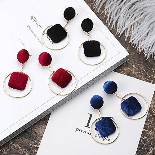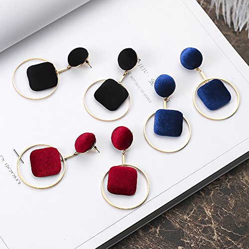PowerLead ベルベットの耳のスタッドラウンドスクエアピアス幾何学ペンダントのイヤリング女の子、若い女性、セクシーな女性のために利用可能なマルチカラー (ブル)