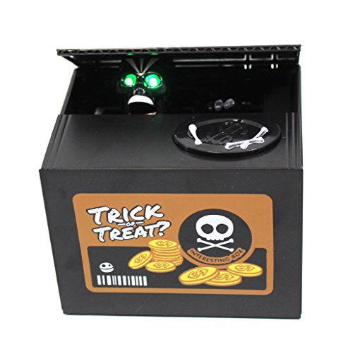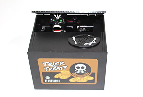 - 恐ろしいブラックスカルの電池式コイン・バンク。