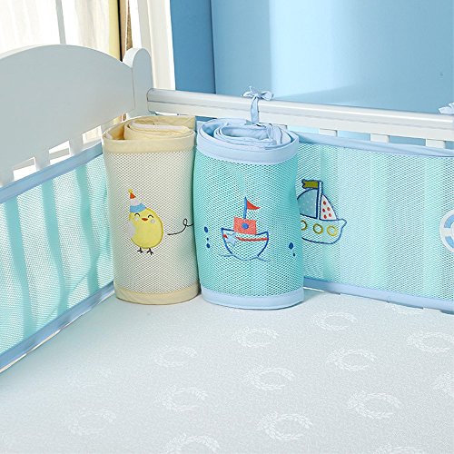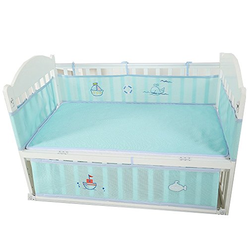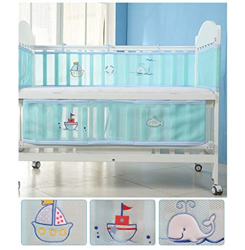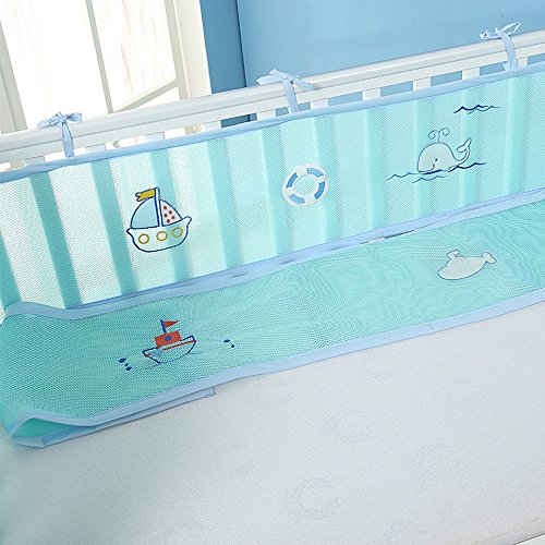 PreciousBaby ベッドガード ベッドレール ベビーベッドフェンス 4シーズン使用可能 通気性 掛け布団のずれ防止 ポータブル オシャレ 丈夫 四方タイプ ベッドバンパー 2色選択可能 取り付け便利 可愛い 130x70cm以下のベビーベッドに適合 (オーシャンワールド)