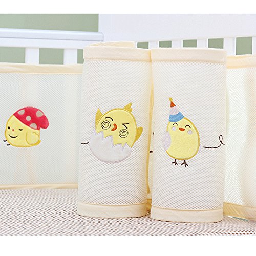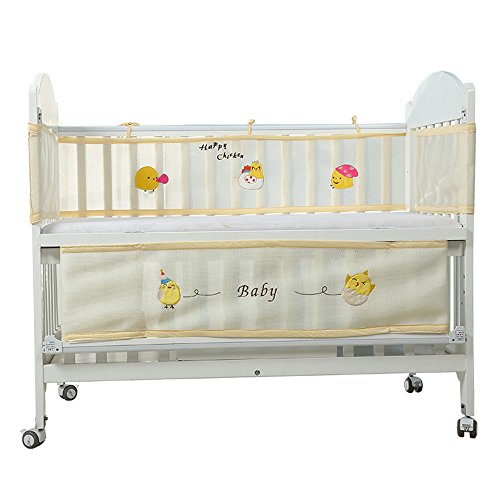 PreciousBaby ベッドガード ベッドレール ベビーベッドフェンス 4シーズン使用可能 通気性 掛け布団のずれ防止 ポータブル オシャレ 丈夫 四方タイプ ベッドバンパー 2色選択可能 取り付け便利 可愛い 130x70cm以下のベビーベッドに適合 (幸せなひよこ)