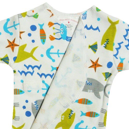【未熟児】【低出生体重児】【早産児】【NICU】用 ベビー服: 長袖ロンパース シーライフ (1400-2700g)