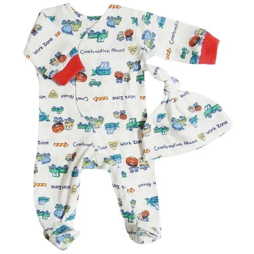 【未熟児】【低出生体重児】【早産児】【NICU】用 ベビー服: 長袖カバーオール 帽子付き ワークゾーン (2300-3000g)