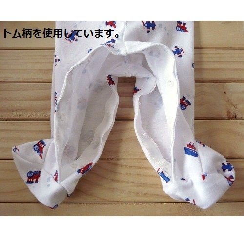 股の部分もスナップボタンで簡単開閉出来て、おむつ変えも楽に出来ます。